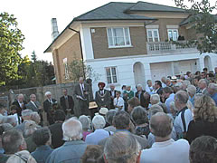 Standing on a mini 2 step kitchen ladder, so that they could seen, and with aid of an occasionally misbehaving microphone, the 3 key speakers gave very impressive speeches. Mr James Wisdom, Chairman of the Brentford & Chiswick History Society (I ought to join that) started proceedings, outlining the significance of the Event, and giving thanks to the various witnesses and others who had supported the commemoration. The acknowledgements list was lengthy and included Carolyn Hammond at Chiswick Library, Val Bott, Scott McKinlay, Christopher Jolly and many others.
