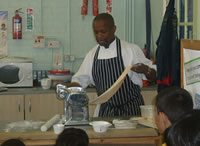 The highly acclaimed chef, who is himself a father of four, delighted the pupils with his demonstrations of fruit salads, home made chocolate ice cream, tart tatin, watermelon smoothie and even got the children eating freshly made pasta with raw broccoli, anchovies and black olives!
