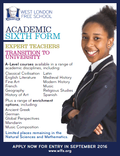 Opening this September, the West London Free School Sixth Form offers a stimulating range of academic A-level courses that will enable all students to develop an in-depth knowledge and mastery of their chosen subjects.