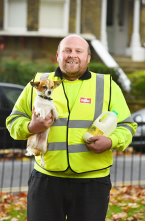 The milkman, based at Wimbledon depot of milk&more, has once again gone beyond the call of duty, by saving a pint-sized pooch he found soaking wet and shivering during a torrential storm in Putney. Ian Beardwell spotted the tiny frightened dog outside a house during his round in the early hours of the morning and following failed attempts to contact her owner, the milkman of 25 years wrapped her in a towel, placed her beside him in the front seat of his electric float and continued his deliveries.