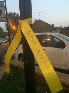 Hanwell and many other parts of Ealing are expected to be covered in yellow ribbons today (Thursday 11th September) as the community join together in their efforts to Find Alice.