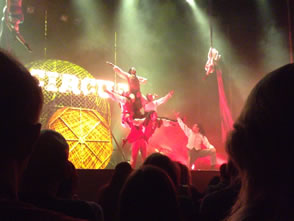 This high-energy collection of acts from high-wire, to acrobatic, to drumming, fire-eating, highstepping, and knife-throwing, had us on the edge of our seats and we weren't the only ones. The audiance ranged from little children to grannies, all spellbound by the performance by the jugglers, acrobats, aerialists, dancers, musicians and stuntmen from all over the world in the thirty-strong troupe.