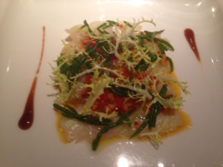 The cod carpaccio served with samphire and giardiniera salsa (£10.50)was was an attractively presented, colourful dish. The cod had a beautiful soft texture which was completed by the samphire, some crisp lettuce and a salsa. The salsa was tangy made of pickled carrots and other vegetables.