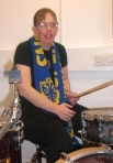 Marie (left), a young woman with learning disabilities, attends the High Path Day Centre. She helped create the initial design for the High Path Super Dons flag and she has also been involved with the Big Brass band.
