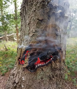In a separate incident, one discarded cigarette end caught on the base of a tree and sparked a fire in the trunk (see picture).