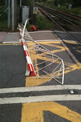 The incident took place less than 30 seconds before a train was due through the crossing. It caused £4,000 worth of damage (see right) and cost Network Rail £6,000 in delays.