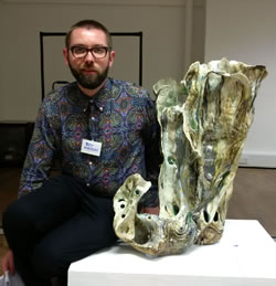 Chair Ben Nicolas is pictured (left) with one of his ceramic sculptures