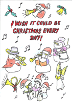 The colourful winning design (right) by Eleanor, aged 11, included Santa and snowmen playing musical instruments and has been used on 500 cards to be sold to boost funds for Merton Music Foundation.