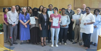 Merton's cabinet member for adult social care and health, Councillor Caroline Cooper-Marbiah and director of public health Kay Eilbert were there to present certificates to the residents for completing their training.