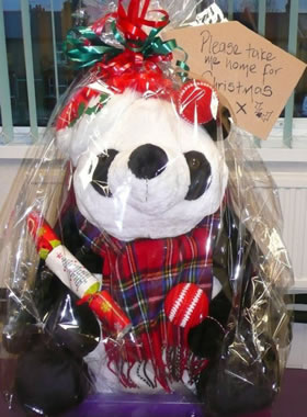 This fluffy panda is looking for a new home this Christmas, with money raised in a social media auction set to be donated to the mayor of Merton’s charities.