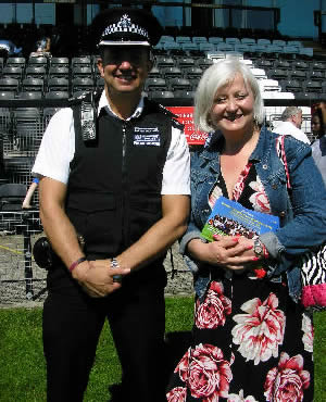 Tennis legend and BBC presenter Sue Barker wowed the throng in Mitcham when she carried the flame onto the pitch at Tooting and Mitcham FC (left).