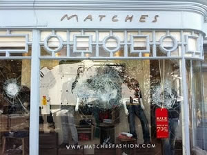 A fashion shop in Wimbledon Village had its windows shattered (right) and there were also reports of trouble around Wimbledon town centre.