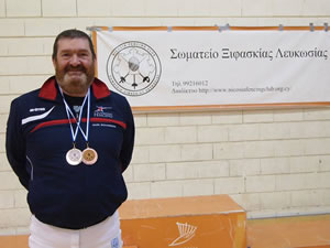 On Saturday (October 22) club captain, Mark Richardson (below left) won individual bronze in Cyprus at the Nicosia friendship cup épée competition then, fencing for Crete, won silver in the team event at the Evangelos Florakis Stadium.