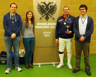 Eight Wimbledon fencers won medals. Kate Downer Silver in the Novice women's foil, Erin Golden Bronze in the Intermediate Women's foil, Hilmi Sergen Gold and Fabian Worthington Silver in the Novice Men's Foil, Rachel Carter Gold in the Novice Women's Epée, Michael O’Keefe Bronze in the Novice Men's sabre, Christopher Micklem Silver in the Intermediate Men's Epée and Mark Richardson Gold in the Intermediate Men's sabre.