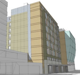 The changes include the back of the hotel facing the Victoria houses in Griffiths Road is now mainly brick mixed with cladding. The side flank with Southey Road is now a brick strip followed by metal.