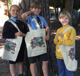 The bags, priced at £4 each, are strong canvas and brightly decorated, as can be seen in the above photograph.
