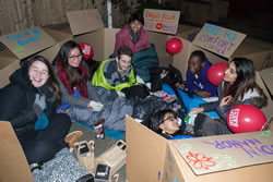 A village made of cardboard shelters emerged outside Holy Trinity Church in Wimbledon, when participants in this year's Sleep Easy set up their homes for the night earlier this month.