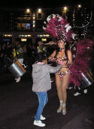 The parade on Thursday was led (left) by the traditional Samba dancers from the Taste of Brasil.
