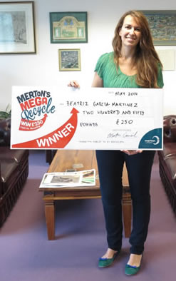 Wimbledon resident Beatriz Garcia-Martinez is the first winner of Merton Mega Recycle's top prize of £250.